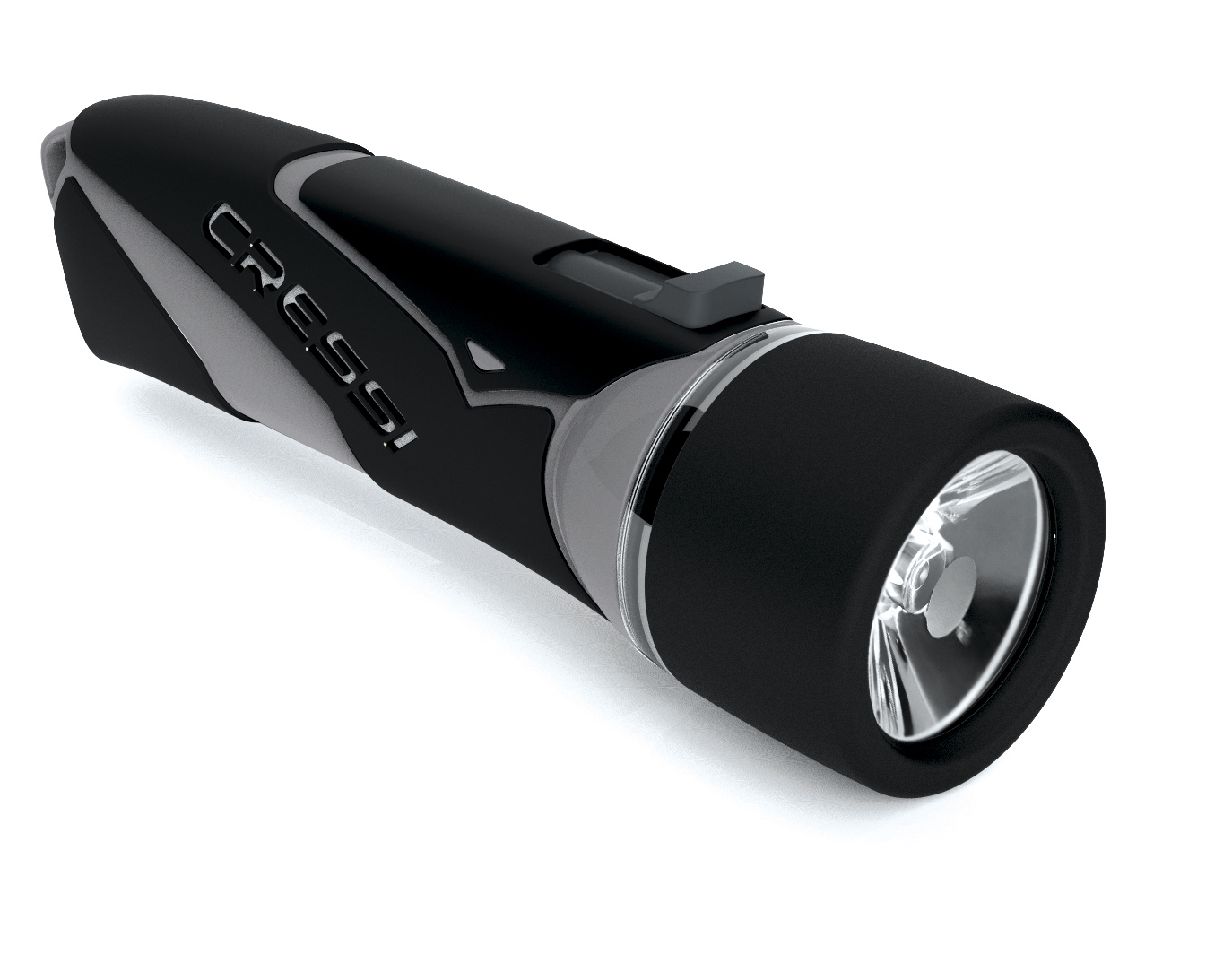 El sistema electrónico desarrollado por Cressi permite una eficiencia superior (~30 % más) frente a sistemas estándar. Emite señal de aviso mediante parpadeo cuando la carga desciende al ~20 %, incluye apagado automático de seguridad y mantiene una iluminación estable incluso cuando el nivel de baterías baja.